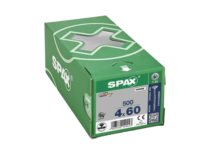 Vis bois agglo tête fraisée empreinte pozydriv filetage total 4 x 60 mm 500 pièces – SPAX